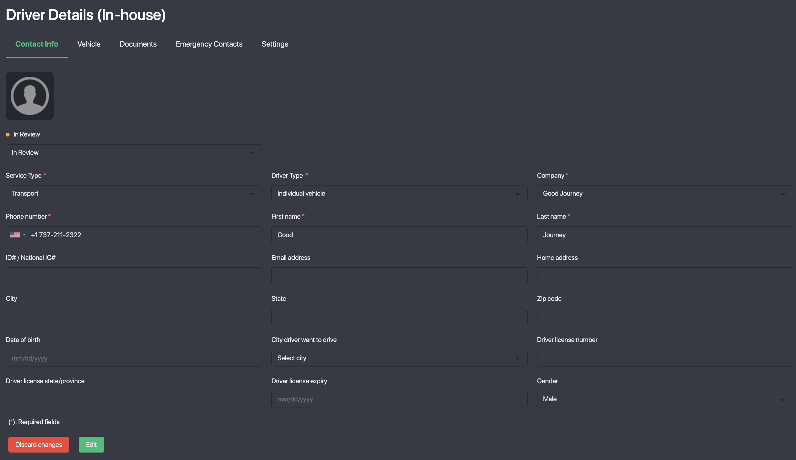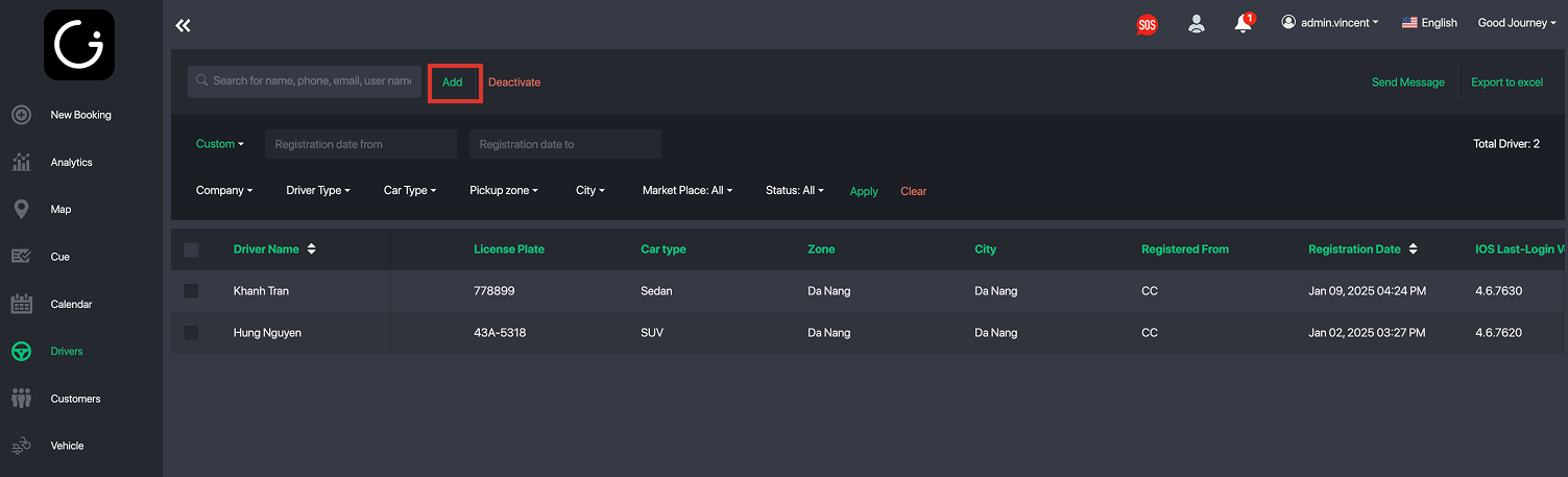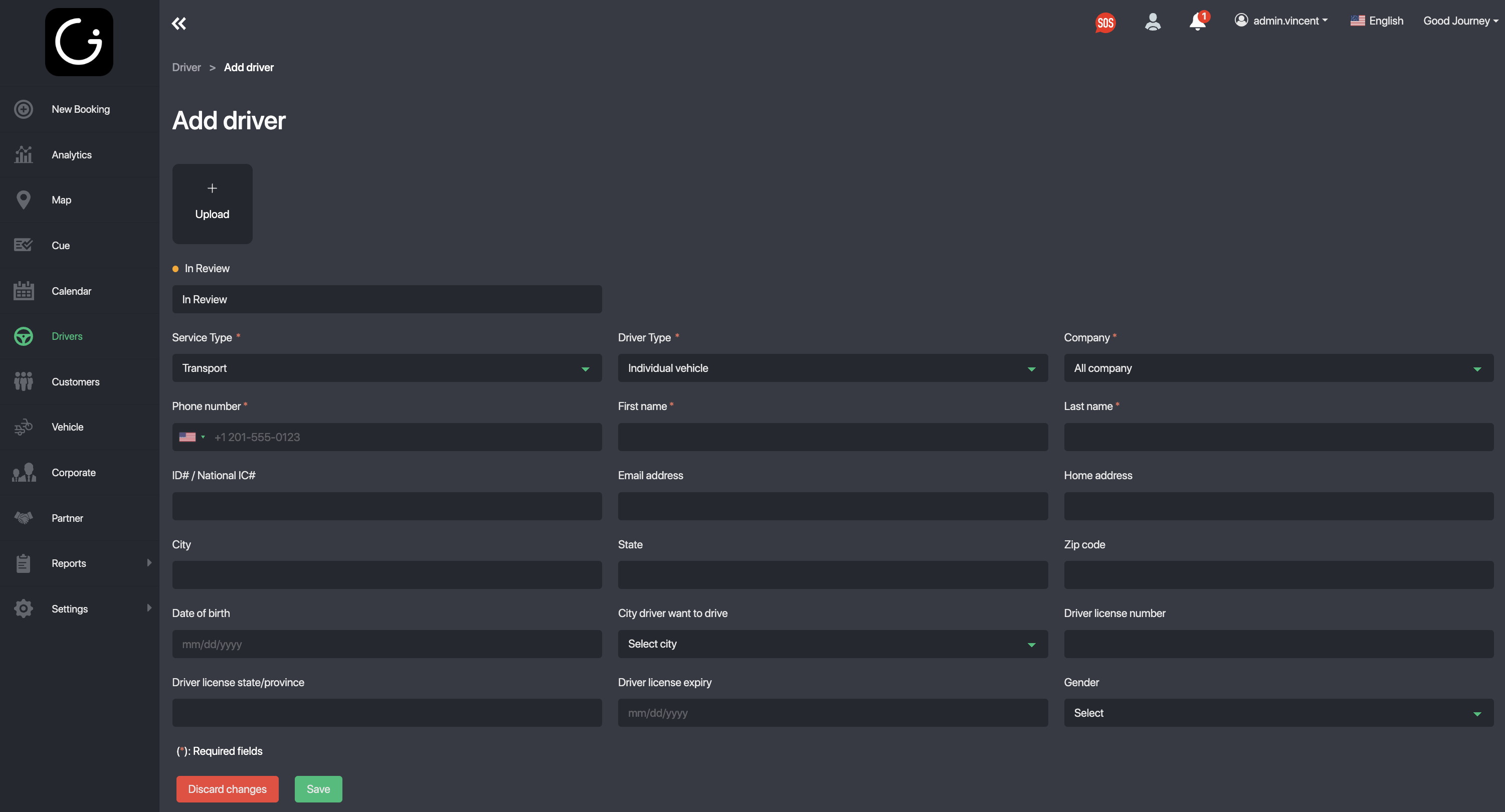 Your driver is now ready to receive bookings through the GoodJourney.io platform.