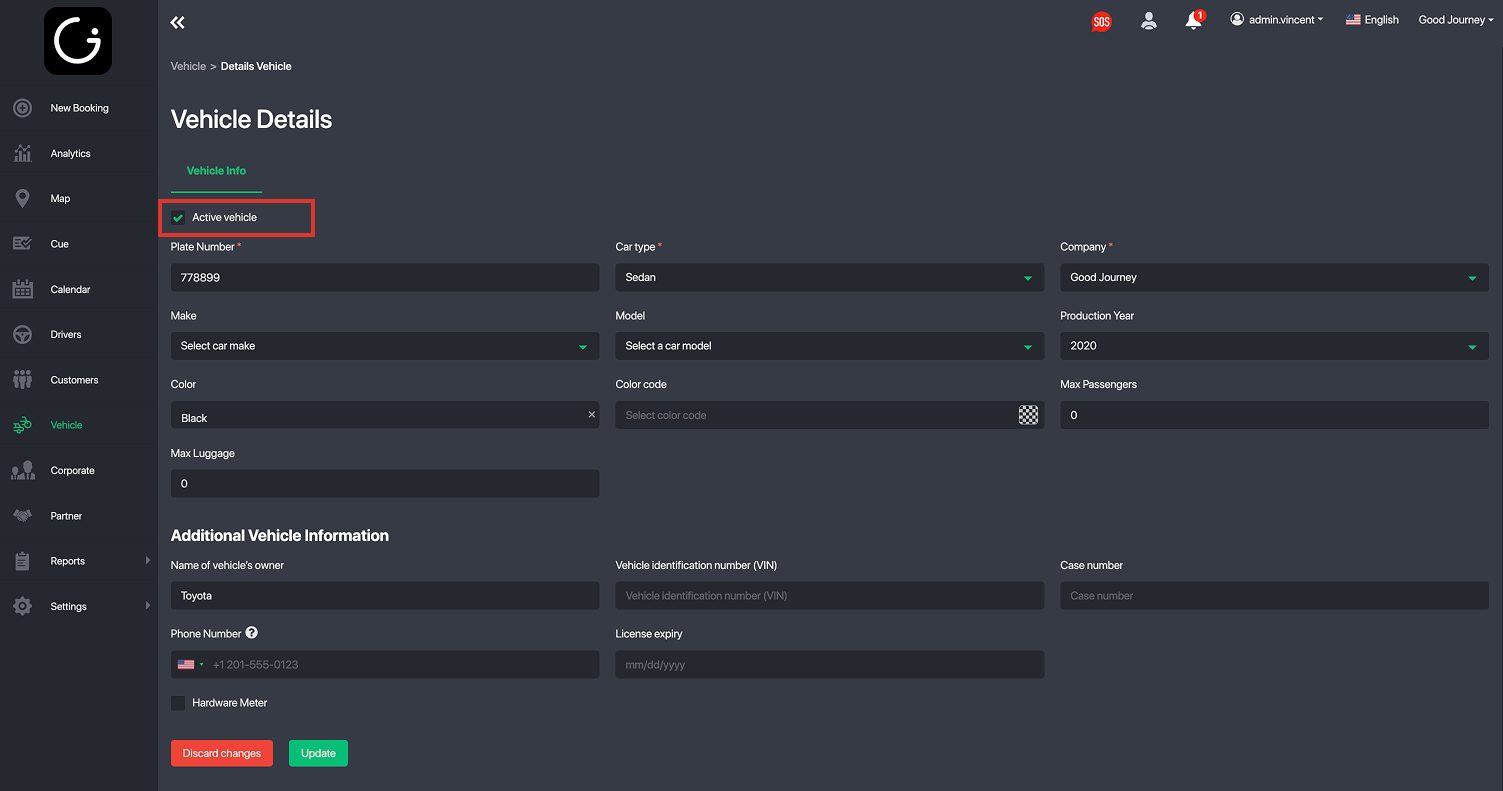 Vehicle Management a place to manage all your vehicles. From the left side bar menu, navigate to the vehicle management section. Here you can: