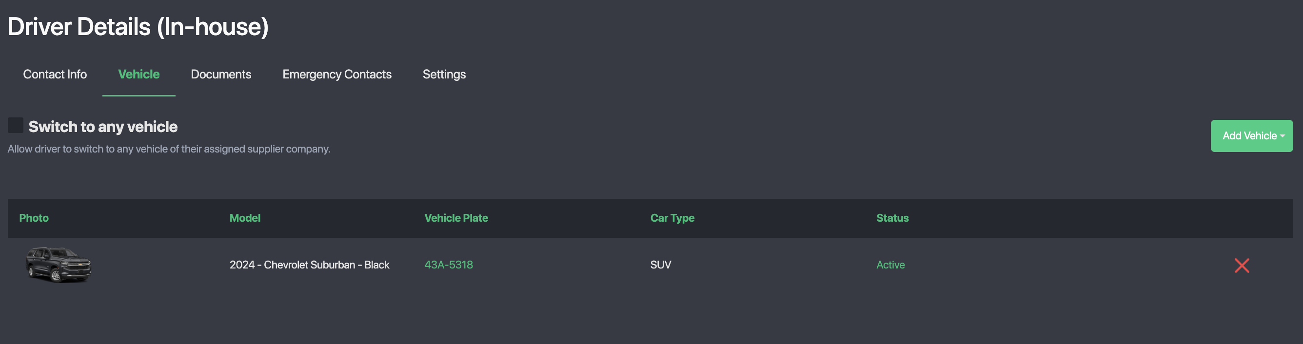 To link a vehicle to a driver you can navigate to the driver's profile under the Vehicle tab, you can choose to link specific vehicles to a driver.