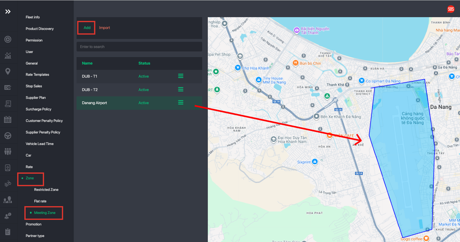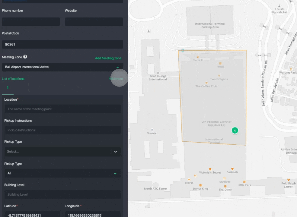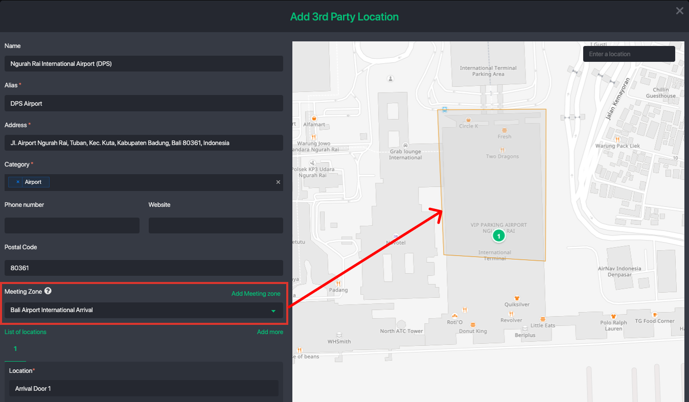 Assign the meeting zone so the system knows when to display these instructions. If a passenger’s pickup point falls within this zone, the corresponding meeting instructions will be shown automatically.