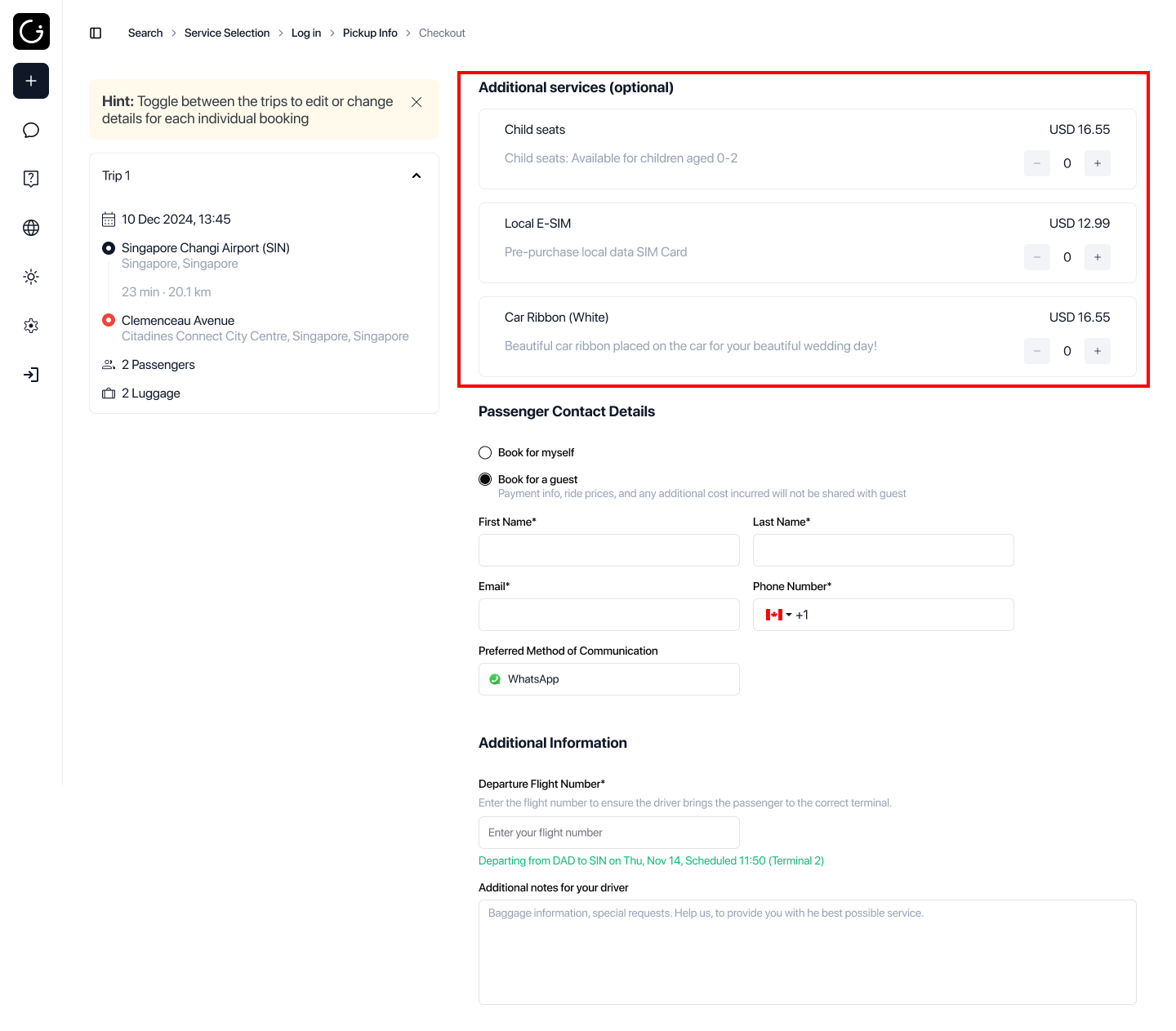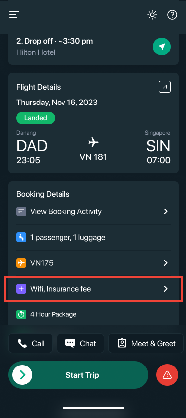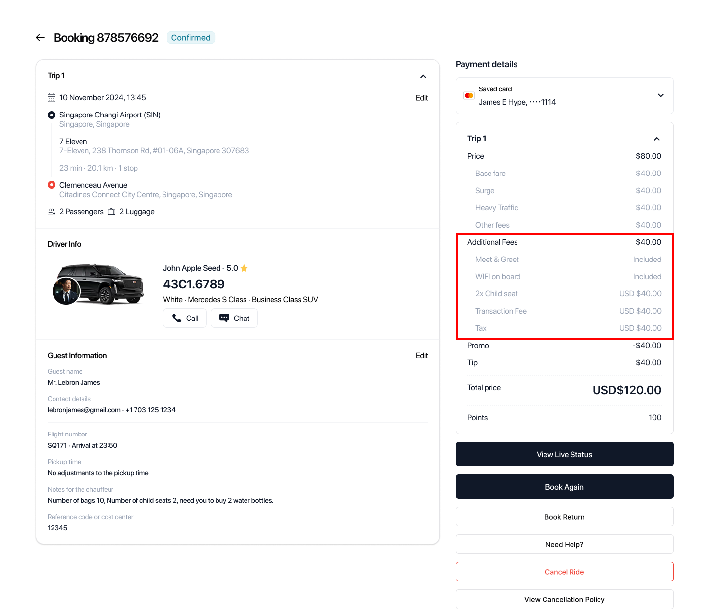 - Drivers can view full booking details, including any additional add-ons or services requested by the customer, directly in the Driver App.