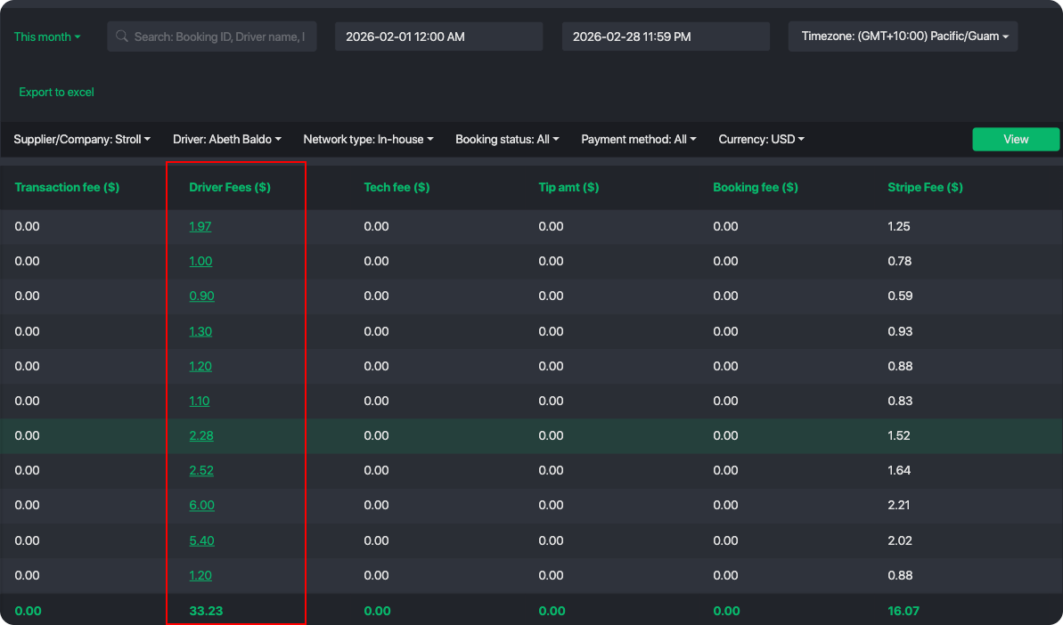 Fleet's will be able to track and generate reports for all additional fees for each bookings driver completed.
