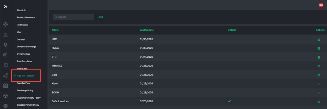 You can create multiple add-on templates to support different pricing and service requirements. This is especially useful when offering customized add-ons or extra services for specific corporate or company accounts. Each corporate profile can be linked to its own add-on template, allowing you to tailor available services, pricing, and rules per client while keeping configurations clean and reusable.