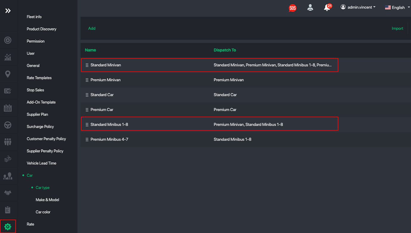 For example, a booking requested as Standard can also be dispatched to drivers with Standard SUV or Premium vehicles, helping you increase acceptance rates and optimize fleet coverage.