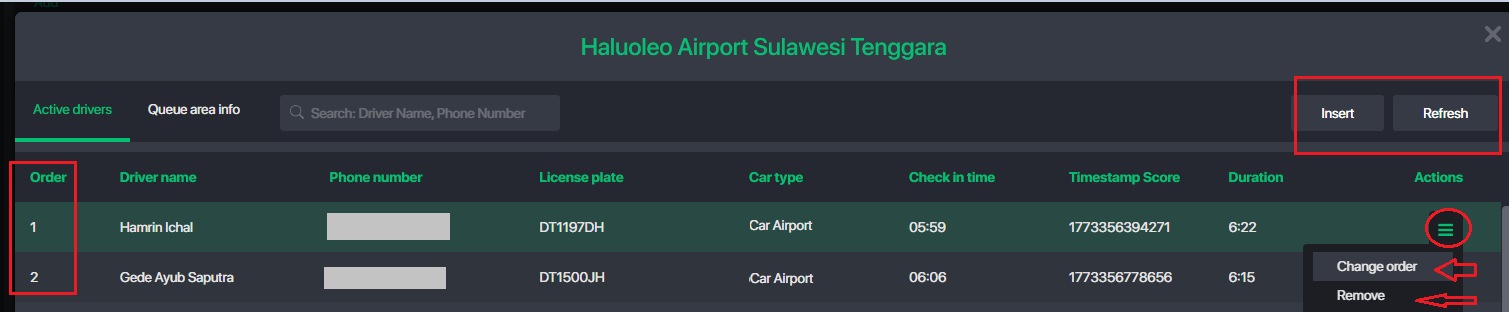 3. Operator manages the driver queuing